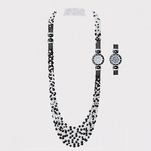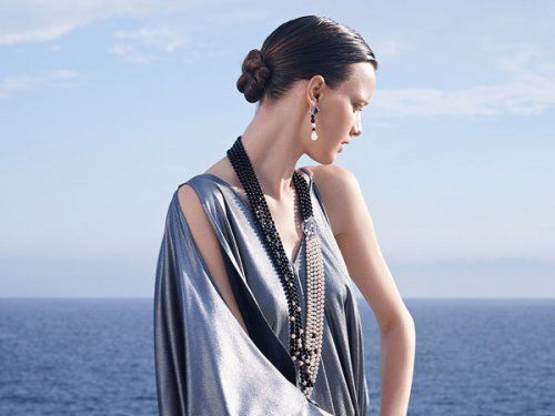 Rose Des Vents長項鏈發出向彼方遠揚的召喚,乘着靜謐的月光,夜渡黑海。大小各異的白色養殖珍珠與縞瑪瑙圓珠交織出不對稱排列,令人聯想起靜謐漣漪映襯出的光澤。雙面主題圖案為這條如夜曲般的長項鏈增添韻律:鑲綴鑽石的一面靈感源自風之玫瑰,另外一面則鑲嵌着漸變色彩的藍寶石與尖晶石,讓這幕微藍色調變幻的奇觀變得更加豐富多彩。