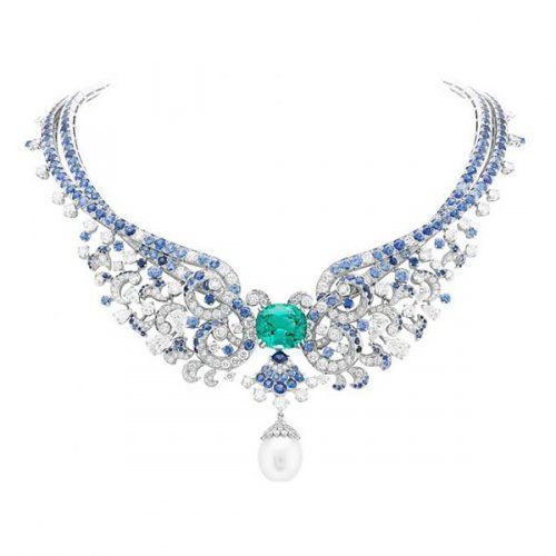Ciapotis項鏈展現其滿鑲藍寶石與圓形及梨形切割鑽石的渦紋,就像是被微風輕撫着的漣漪海面。項鏈中心一顆引人注目的碧璽,重達15.73克拉,被阿拉伯圖飾簇擁着。其生動而明亮的海綠色令人聯想起地中海岸,與沉潛於頸窩處的那顆高貴的白色養殖珍珠相互呼應。為了讓佩戴方式更靈活多變,珍珠與其墜掛的珠寶裝飾均可拆卸。隨着場合的變化,璀璨耀眼、明亮照人或色彩斑斕,共譜一曲晶瑩剔透的旋律。