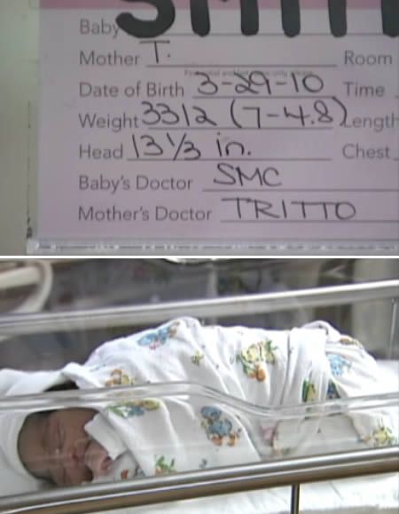 21歲的Belinda Waite在她女兒降生的3個小時前,才被告知她已懷孕。而此前的9個月,她在醫院做了幾次檢查,都被診斷為腸道易激綜合症。2010年2月6日,她再次因疼痛進入醫院,此時醫生告訴她她已有三個月身孕——實際上她已懷孕九個月!當晚回到家後,她便在她媽媽的協助下誕下了這名“突然來臨”的女嬰。