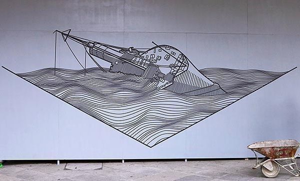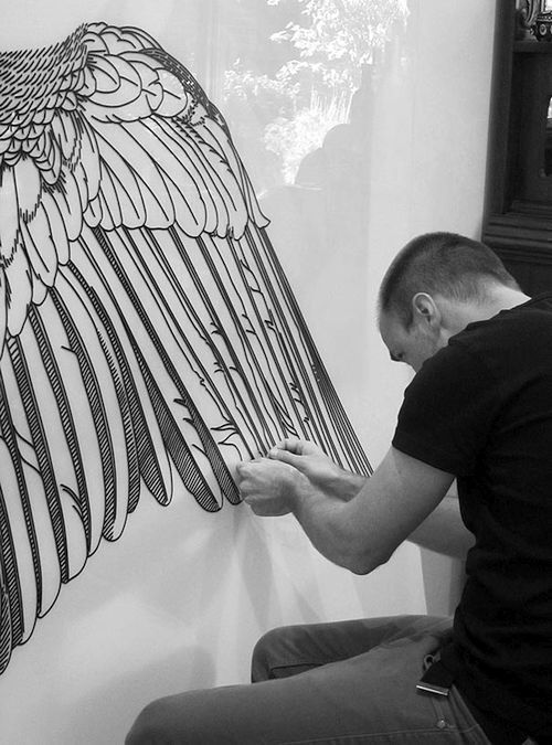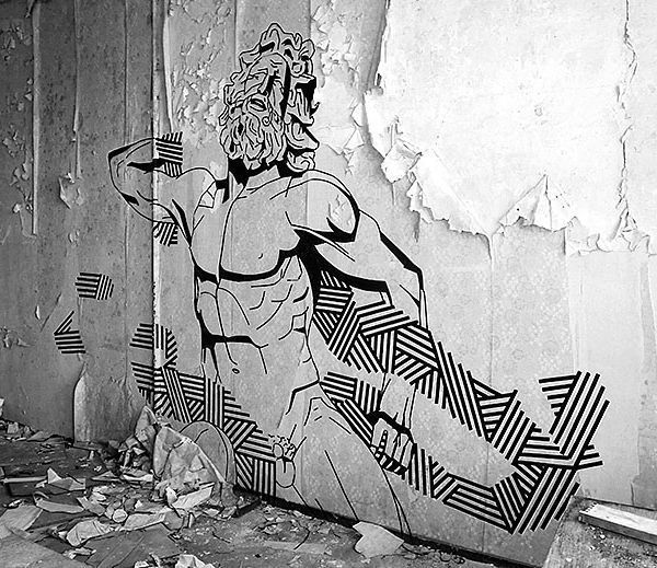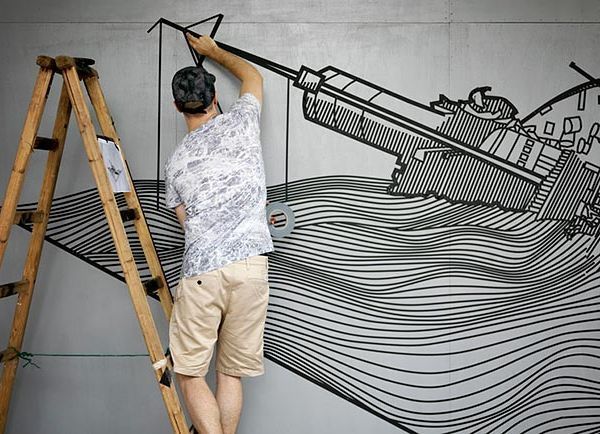 【新三才編譯首發】常見的街頭藝術絕大多數都是用油漆作成的,但是也容易導致業主的不滿。澳大利亞的巴斯迪斯(Buss Diss)則是用膠帶做出街頭藝術。膠帶當然沒有流體顏料的靈活。不過,巴夫迪斯還是繞開了膠帶先天的限制,依舊造出許多精美的圖像,從大型的壁畫到小型的門窗、玻璃畫都有,竟然不像是出自人手的塗鴉。