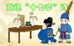 十七字诗,又称“无赖体”,俗称“瘸腿诗”、“吊脚诗”、“翘脚诗”,“十七字诗”属于诽谐诗体,全诗四句,句式是“五五五二”排列,即前三句均为五字,末句为两字,共十七字。据宋人王灼《碧鸡漫志》一书的卷二记载,十七字诗是由民间曲艺艺人发明的,最负盛名的当推北宋著名曲艺家、诨话艺人张山人。