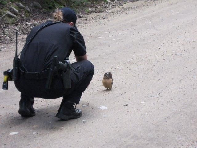 貓頭鷹寶寶攔住女警 想幹嘛?(視頻)