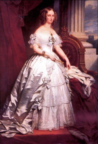 圖片中的法國公主Louise Marie(1812–1850),便以精緻的手工蕾絲澎裙,展現皇室的尊貴風範。