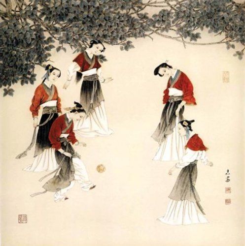 明朝詩人錢福還有《蹴鞠》一詩,“蹴鞠當場二月天,仙風吹下兩嬋娟,汗沾粉面花含露,塵撲蛾眉柳帶煙。翠袖低垂籠玉筍,紅裙斜曳露金蓮。幾回蹴罷嬌無力,恨煞長安美少年”。可見當時的女子既愛紅妝也愛蹴鞠的綺麗風情了。