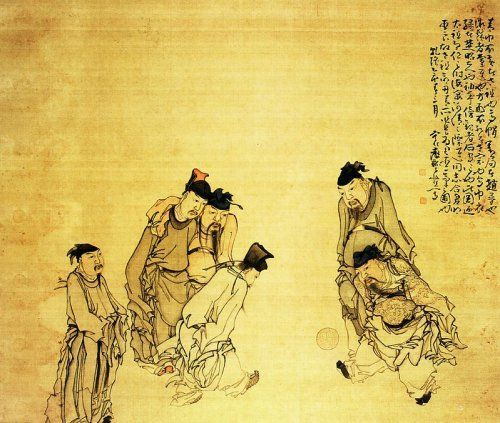 據《漢書》記載,漢武帝閑暇時,經常會在宮中舉行以鬥雞、蹴鞠比賽為主要內容的“雞鞠之會”。漢武帝網羅了踢球的眾多好手,沒事就組織對抗賽,漢武帝看到精彩處,不僅會手之舞之,足之蹈之,還會讓自己專用的文學侍從枚皋當場吟詩作賦。