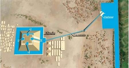 有专家表示,在金字塔内部,还留有水道,因此推测,当时在建造金字塔时,除了大量人力外,还在河流与金字塔建地中间,盖了运河,透过水的浮力,运送大约230万块的巨石。事实上,巨石是从遥远的采石场送过来的。工人利用最原始的材料,也就是羊皮与绳索来做成皮筏,将巨石从河中漂进金字塔里。只要将羊皮充满气,就是最简便的漂浮工具,也是古埃及人使用来运送金字塔原料的工具。