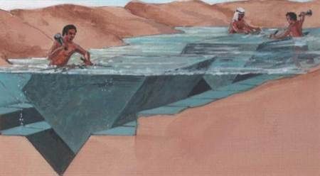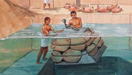 聪明的古埃及人选择用水来将巨石向上运送。