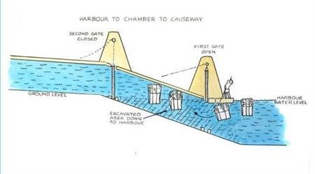 透过水的浮力,运送大约230万块的巨石。
