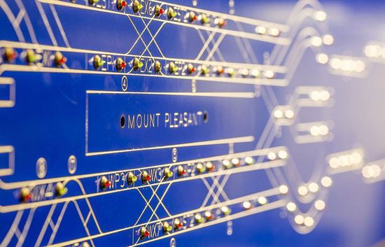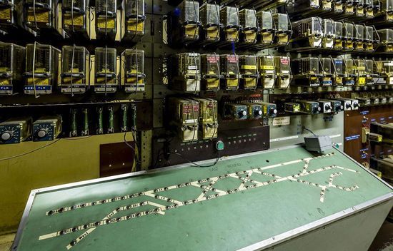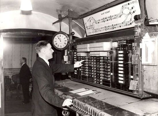 在一战期间,英国财政部禁止邮局订购或安装运行设备。图中是邮局地铁的控制室。
