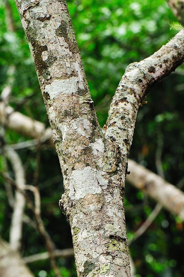馬達加斯加北部,琥珀山(Montagne d'Ambre)國家公園。樹上有一隻苔葉尾壁虎(Mossy Leaf-tailed Gecko)貌似青苔、尾似樹葉。