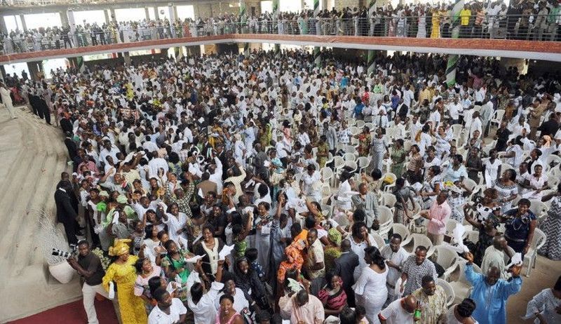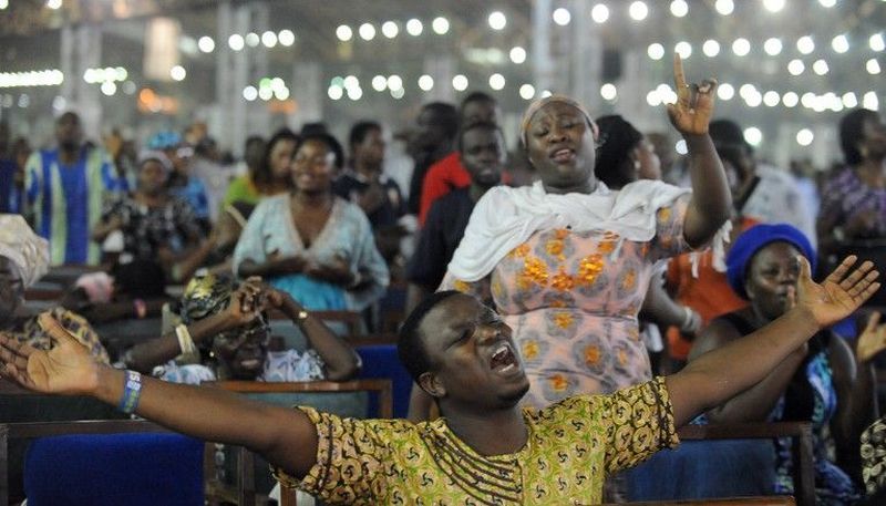 在尼日利亞(Nigeria;奈及利亞)的神召會(Pentecostal church),作禮拜的信徒。這種作禮拜的信徒,已經在非洲的基督教教會,逐漸形成小團體。