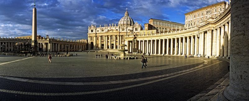 在梵蒂岡的教堂廣場(St. Peter's Square),欣賞聖彼得大教堂的雄偉建築。 ▽