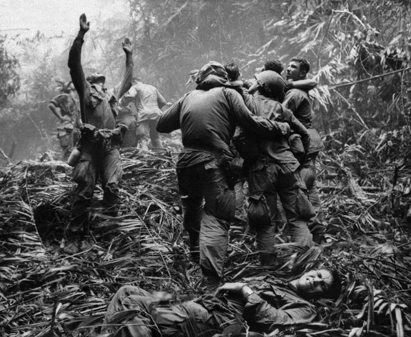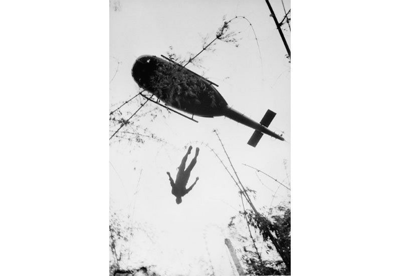 1966年,一架直升機吊起一名在柬埔寨邊境叢林中陣亡的美軍傘兵屍體。法國戰地攝影師Henri Huet拍完這張照片,於1971年因搭乘的直升機在老撾上空被擊落,與其他3名攝影師提起罹難。