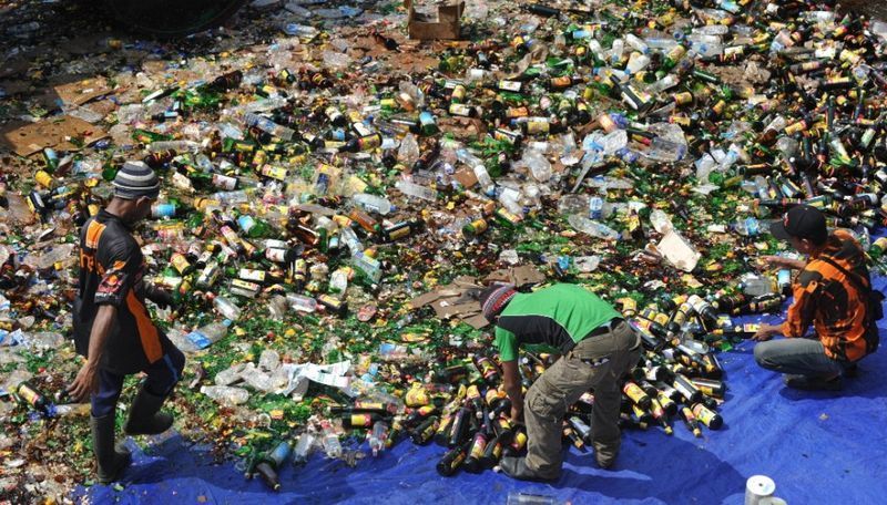 印尼警方查緝 了數以百計瓶酒,與盜版的DVD,為即將開始的齋月做準備。(譯註:本文日期皆以2013年為例,以識別在齋月期間的前後關係)。(雅加 達,7月8日,齋月前夕)