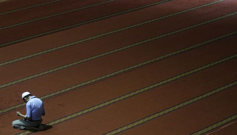 一名印尼男子在一所清真寺裡誦經祈禱。(雅加達,7月9日)