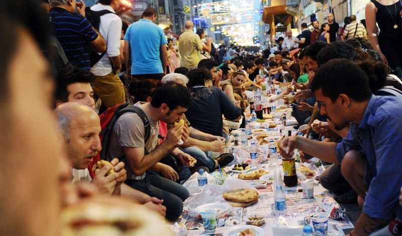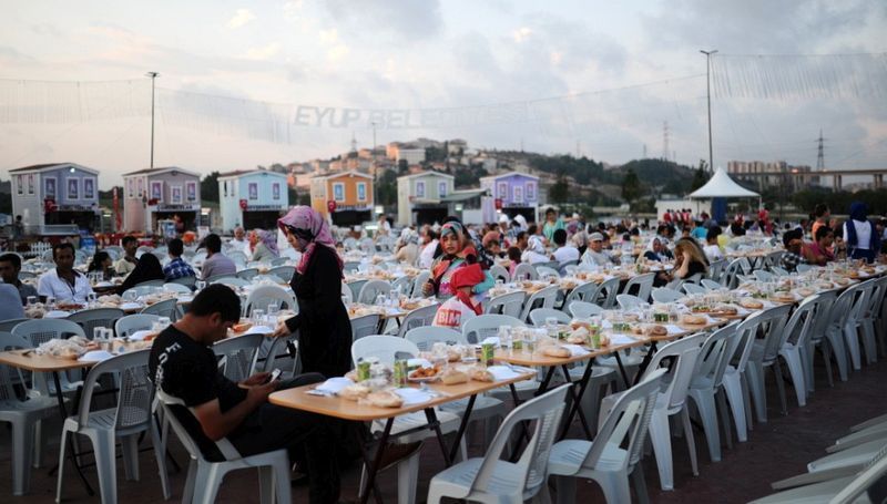 土耳其穆斯林在等待夜晚的開齋飯。(伊斯坦堡,7月10日)