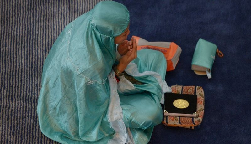 一名印尼婦女,在清真寺裡祈禱。(雅加達,7月10日,齋月第2天)
