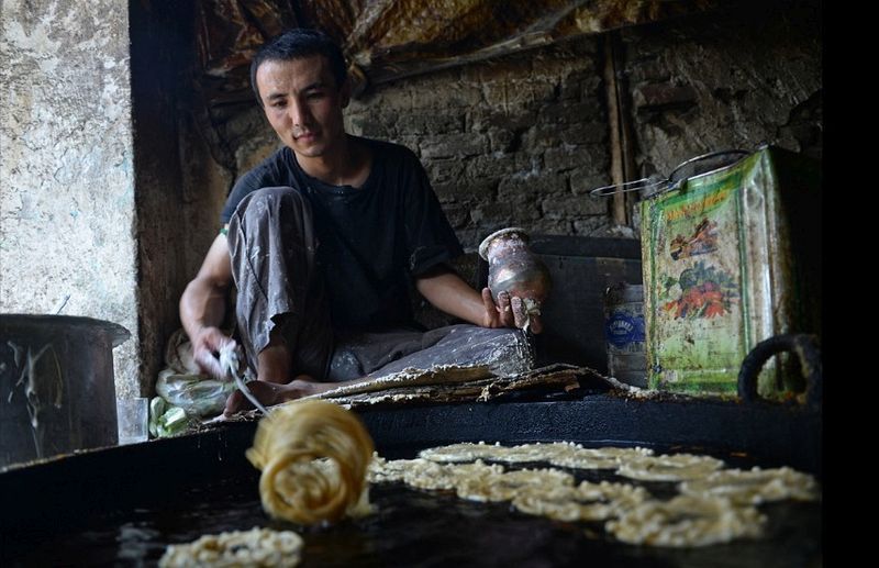 一名阿富汗男子在準備甜食。(喀布爾,7月8日)