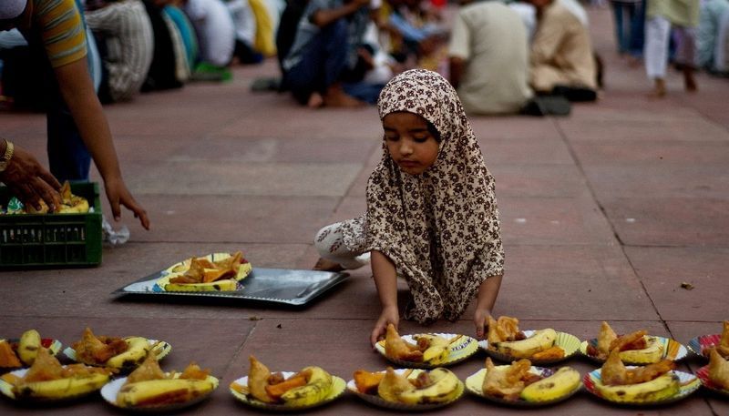 一些穆斯林在進用開齋飯。(新德里,7月12日)