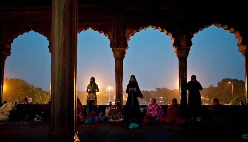 在印度,一些印度穆斯林婦女,在開齋飯後進行祈禱。(新德里,7月11日)