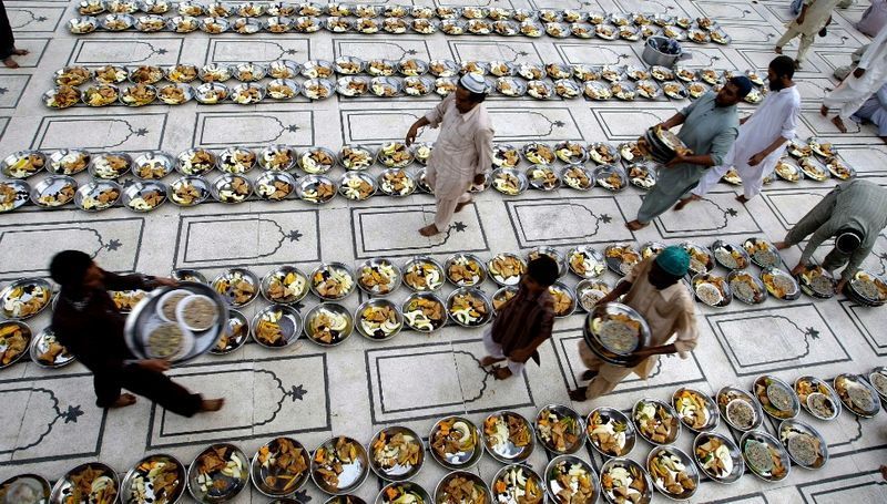 在巴基斯坦的一個清真寺,當地志工正在準備開齋飯的餐點。(卡拉奇,7月11日)