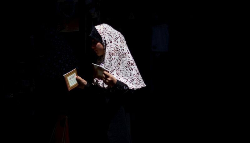 在印度,在海德拉巴的Madrasatur-Rashaad宗教學校裡,女生正在誦讀《古蘭經》。(海德拉巴,7月17日)