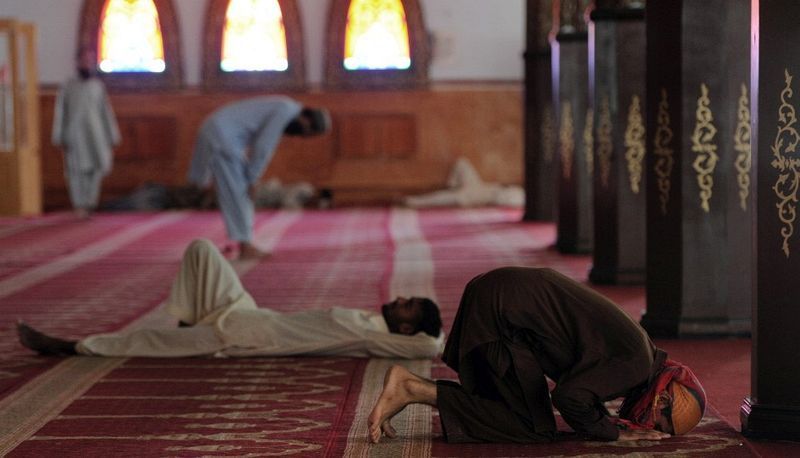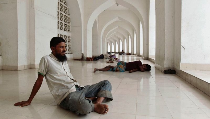 在孟加拉國,穆斯林在清真寺上週日,休息。(達卡,7月14日)