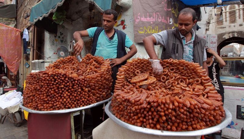 在葉門,攤販在街頭上販賣糖果。(薩那,7月15日)