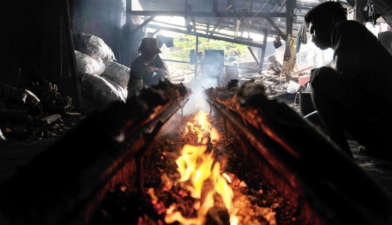 在印尼,男子在做竹筒飯。這是一種來自西蘇門答臘的典型印尼美食。(雅加達,7月18日)