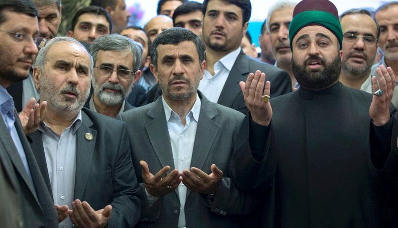 在伊拉克,前伊朗總統賈德(Mahmoud Ahmadinejad)在伊瑪目Abbas聖殿內祈禱。(卡爾巴拉,7月19日)