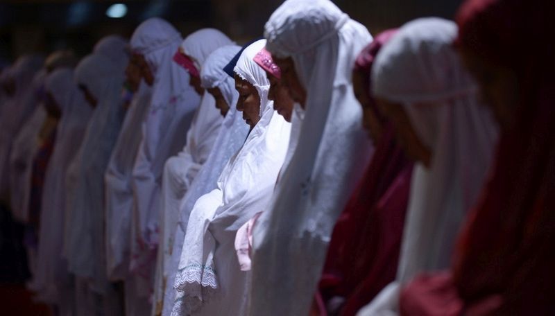 在齋月的第一個夜晚,一些印尼婦女正祈禱。(雅加達,7月9日,齋月第1天)