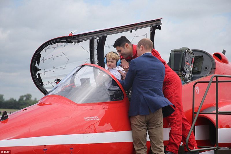 英國劍橋公爵一家三口同遊2016年皇家國際航空展,小王子體驗紅色箭頭特技小組座機