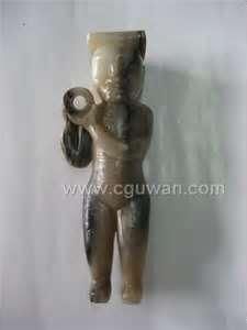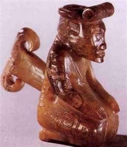 上個世紀五十年代美國考古學家在墨西哥La Venta地方發掘的一處距今約3200年的遺迹中,太陽神廟地下,發掘出16尊高七,八英吋的翡翠蛇紋岩雕像和6塊玉圭。