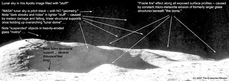 那些官方圖像都是經過特殊處理的,尤其是那些登月的圖像。根據霍格蘭德,阿波羅任務的太空人甚至帶回了那些外星技術的證據,但它們已被美國,俄羅斯,中國,印度和日本等國的政府納入與使用。美國太空人也從月球帶回來了許多結構與物品的證據。