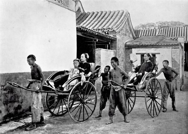 1890年,坐著自家東洋車闊太太出行。