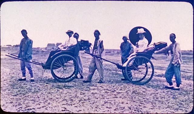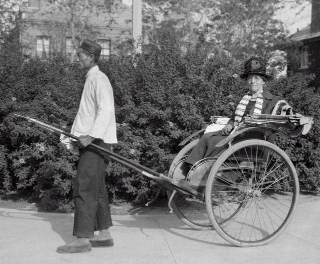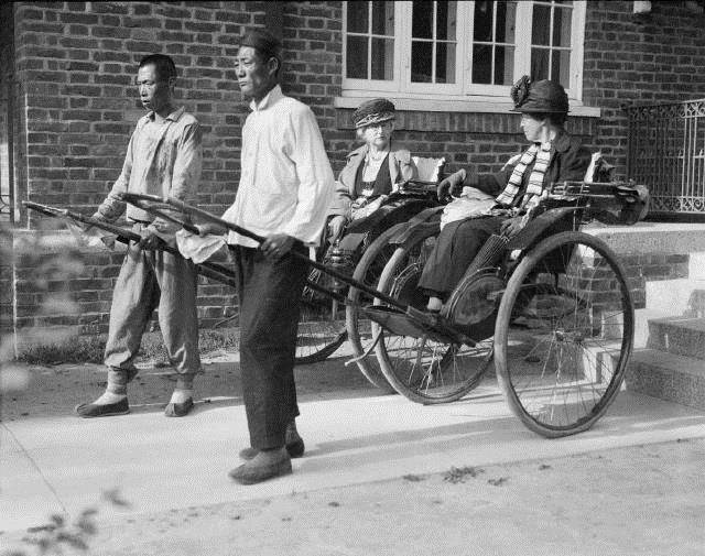 1924-1927,人力車,M.H.G.和朱麗亞・S・哈金斯太太分別乘坐人力車。