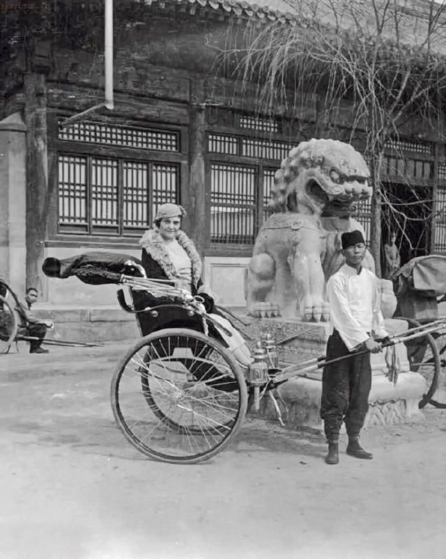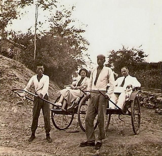 1920,坐洋車四處觀光的洋人。