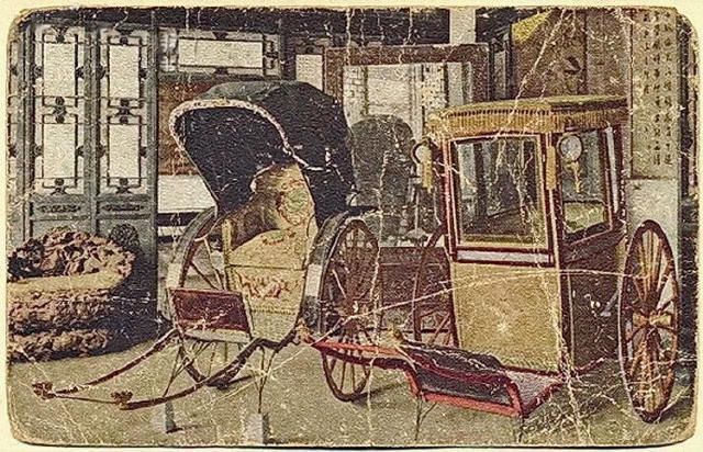 1908,西太后御用洋車(明信片),慈禧太后死後,車子先陳列於頤和園樂壽堂。