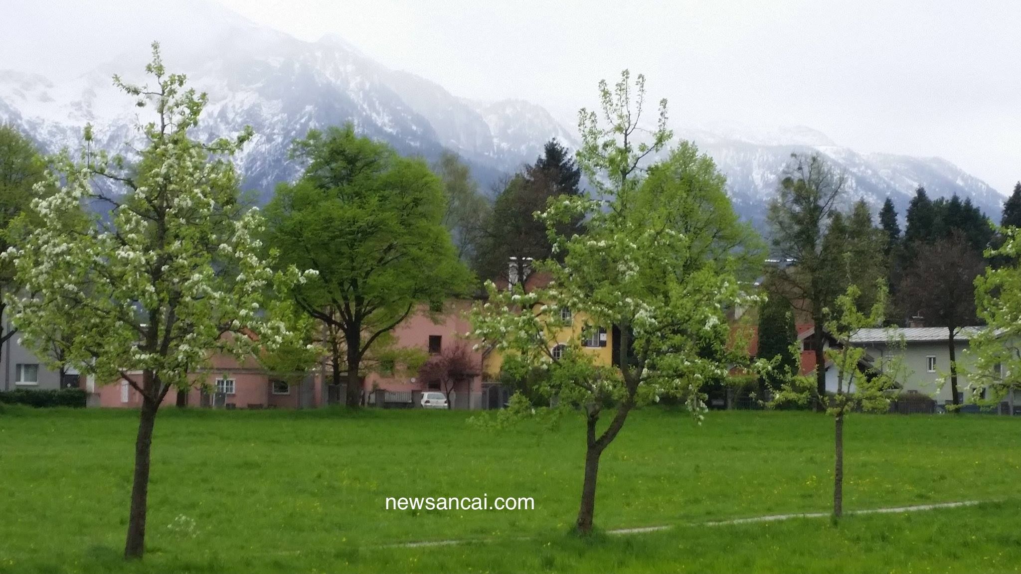 【新三才首發】歐洲的四月就像孩子的臉,一會晴,一會陰。一會冰雹,一會雨。遠處烏雲密佈,近處陽光明媚。野花競相開放。一種掉落,另一種怒放。嫩綠的樹葉,綿羊吃著青草,遠處的雪山一會顯現,一會隱去。大自然像是在跟萬物開著玩笑一樣。
