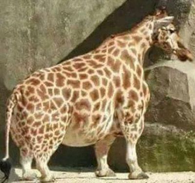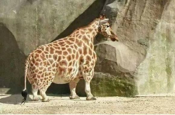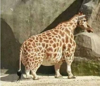 而那個胖胖的肚子估計是動物園的伙食太好了,而長頸鹿的胃口又好,才變成了腿短矮胖的長頸鹿吧。不,是短頸鹿!