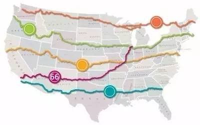 優勢就在這裡,66號公路即將一“斜”成名,在美國歷史上頻繁的向西遷徙中,人們無論從東部哪條公路出發,幾乎都會與66號公路相遇,而66號公路的終點,充滿陽光、堆金積玉的加利福尼亞,正是他們的終極目的地,於是在重大的歷史時刻,美國人一而再、再而三地踏上了66號公路,前後共計四次。