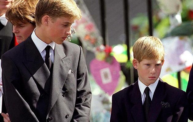 當黛安娜王妃1997年過世時,威廉王子與哈利王子參加母親喪禮時的模樣。