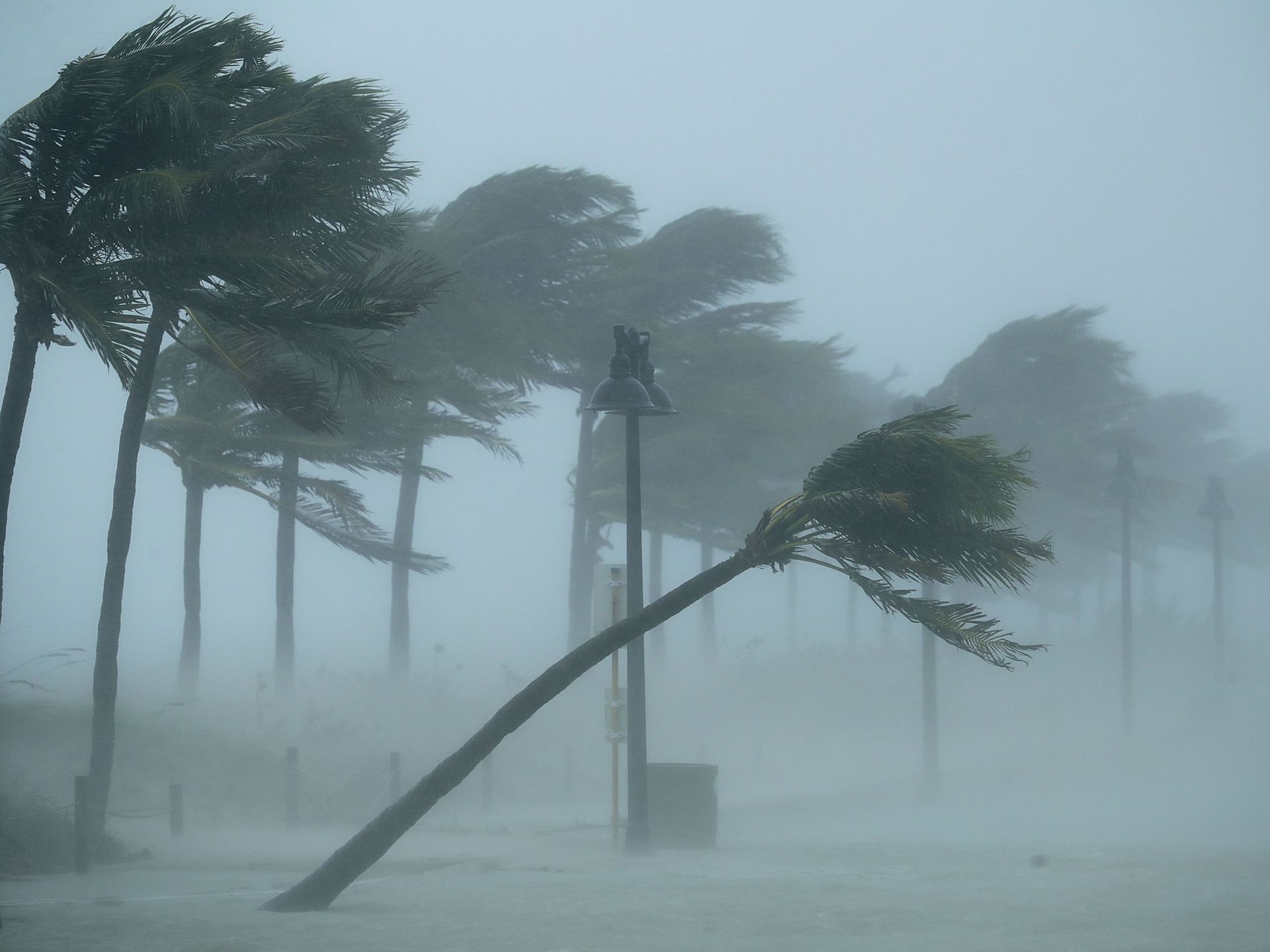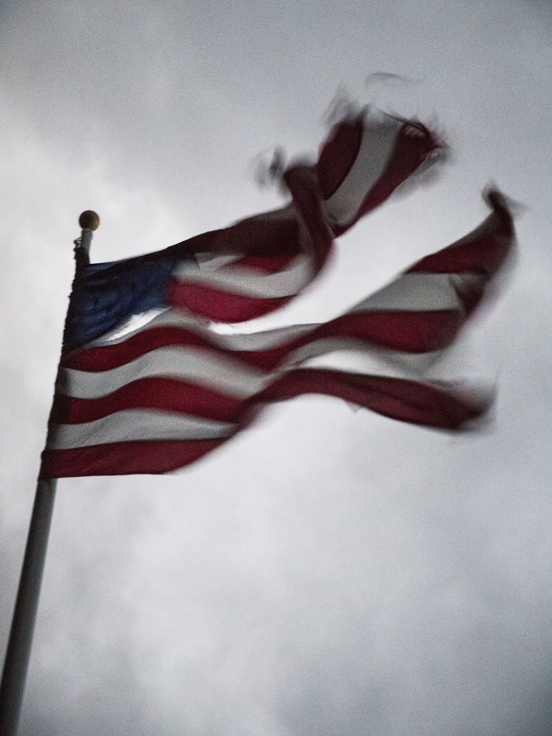 在飓风埃玛之后,美国国旗正猛烈狂风中摇摆
