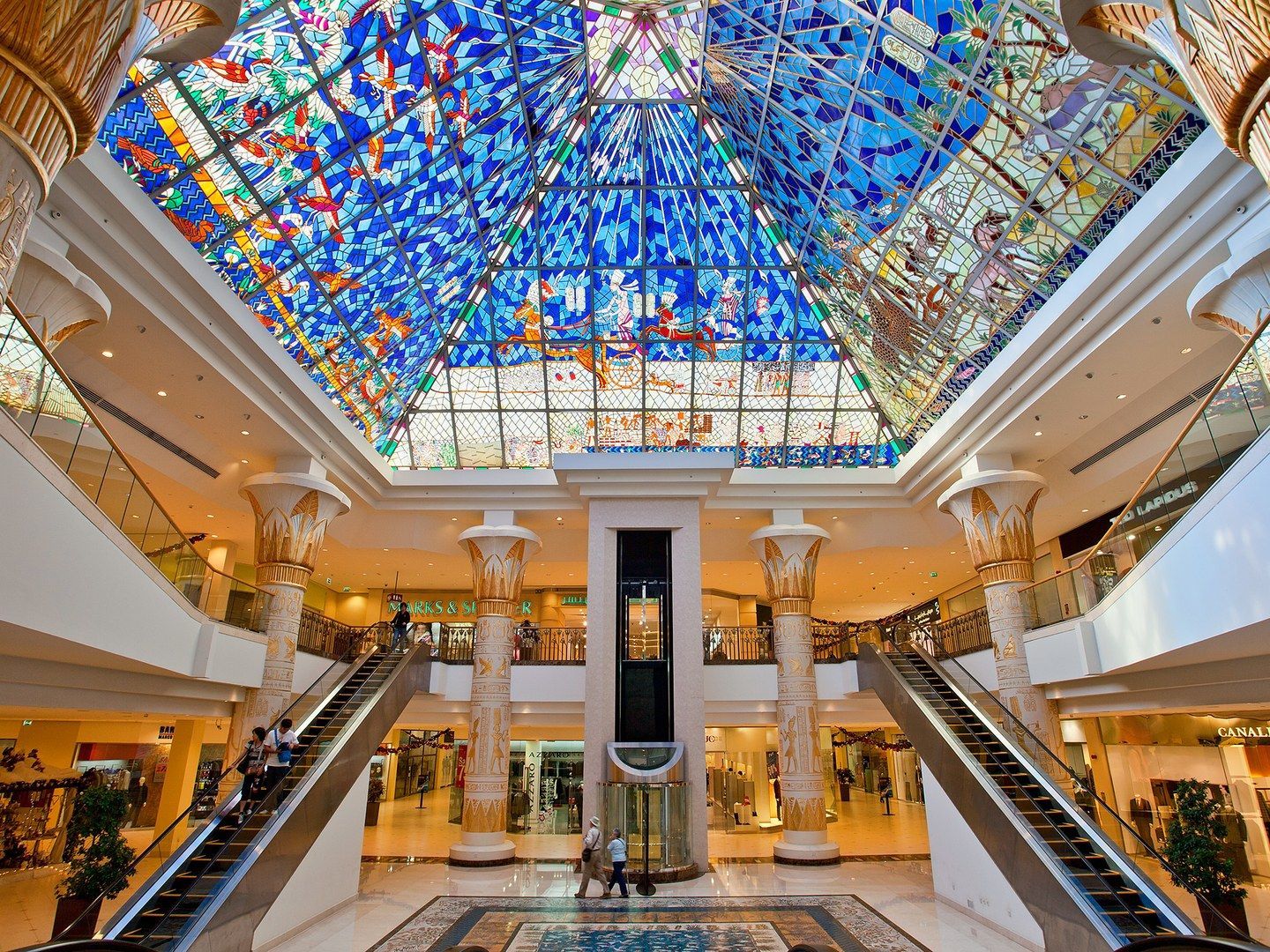 Wafi Mall,杜拜去Wafi購物中心的旅行從來不會失望,即使你空手離開了350家商店和室內阿拉伯市場。建築靈感來自古埃及,購物中心被彩色玻璃錐體裝飾,與大理石地板和雕刻在大廳內的雕像完美融合。