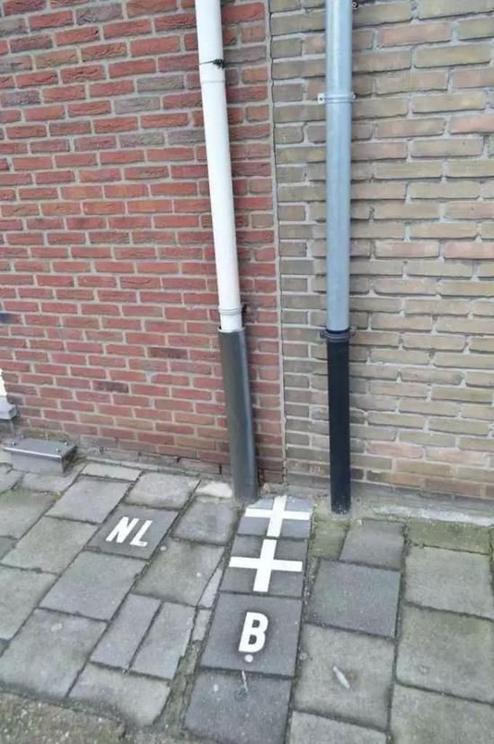 這些就係荷蘭與比利時的國境線——"B"的一側係比利時,"NL"的一側係荷蘭。