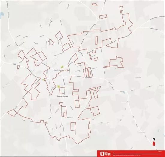最外層的紅色線條之外係荷蘭的領土,線條內圈起來的係比利時的飛地。如果你仔細觀察,還會發現比利時的飛地里還有幾處更小的荷蘭飛地……具體來講,在這個人口不到1萬的小城裡,整整包含了26塊分隔開的領土!