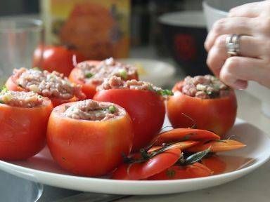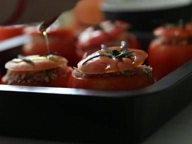 把拌好的食材釀入番茄