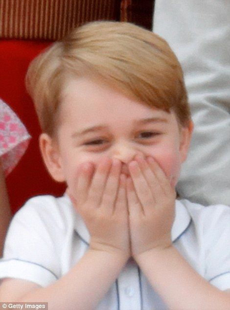喬治王子在白金漢宮睜大眼睛,但很快就不能遏制他的笑聲。