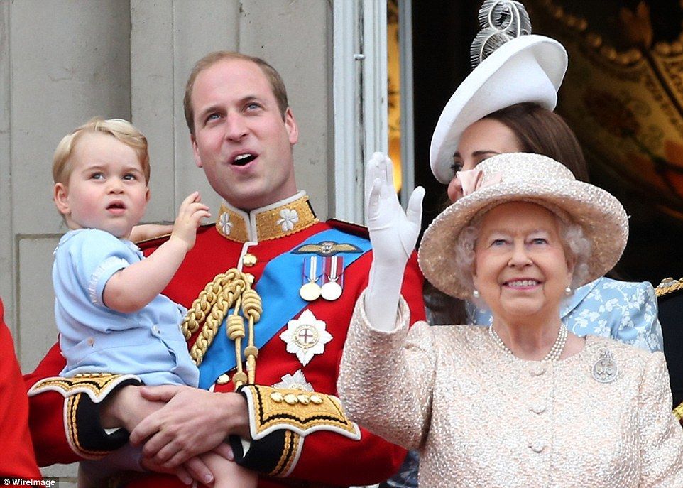 2015年:在他父親的懷抱中撐起的喬治王子。