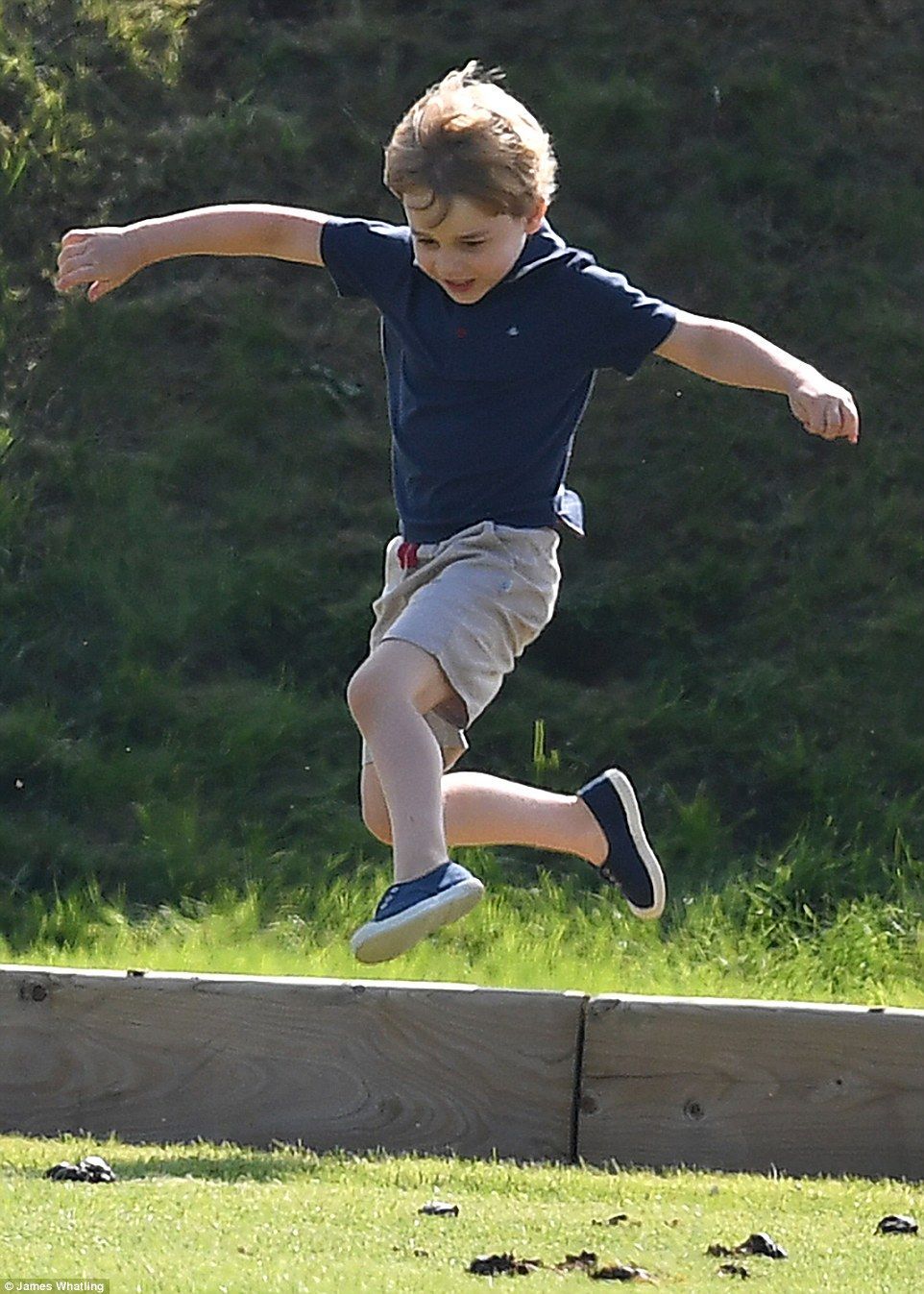 精力充沛的喬治小王子在格洛斯特郡的博福特馬球俱樂部打球時專業地跨欄障礙。